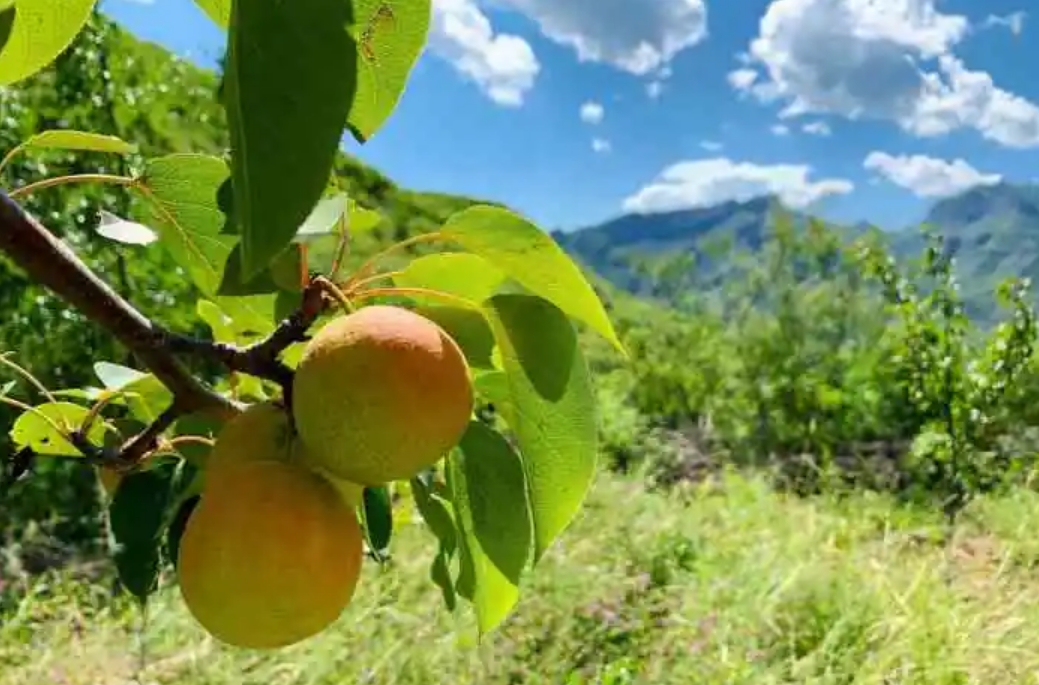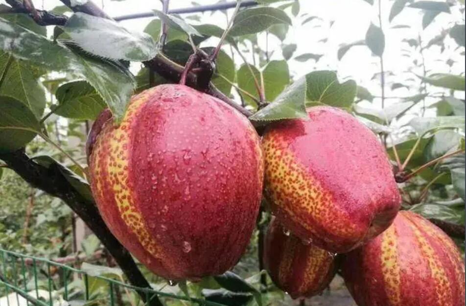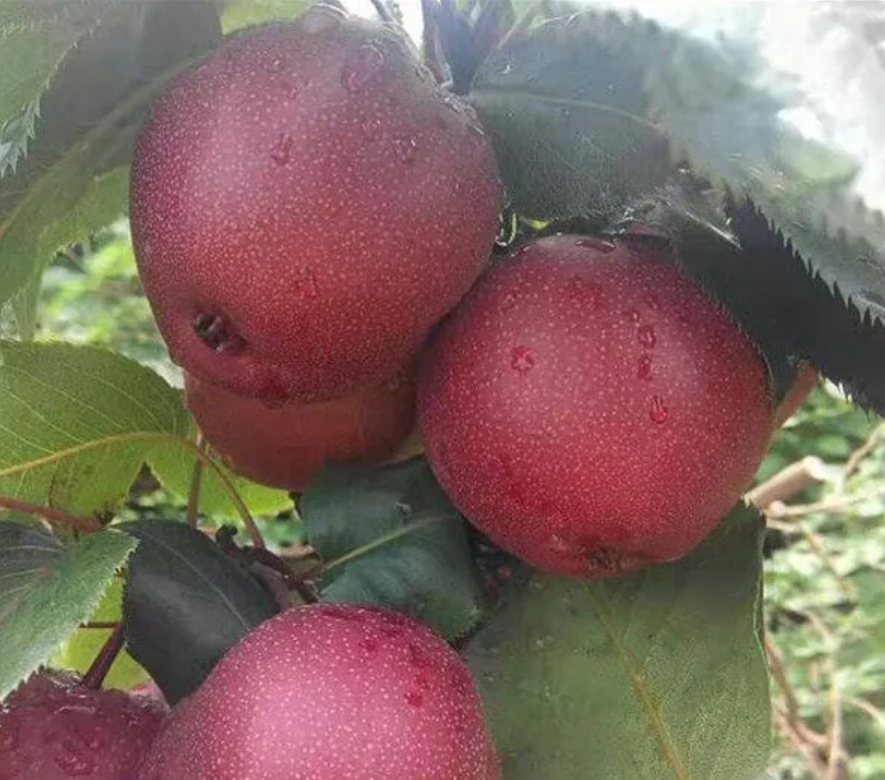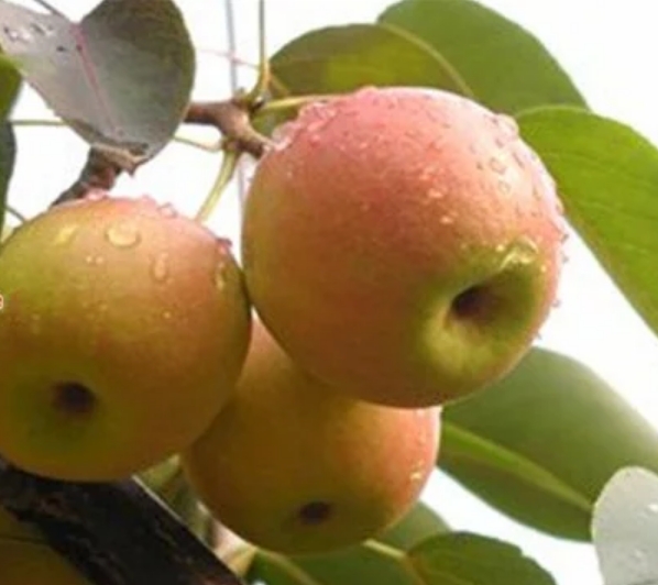 南果梨,蔷薇科梨属多年生植物。直径较大,果皮较厚有韧性,果干较粗有分枝;果实呈近圆形,分布不均;花色为浅白色,成熟后花瓣脱落;果心小且果肉是乳白色。花期5-7月,果期7-9月。 此品种母树为自然杂交实生苗,仍生长在千山区大孤山镇对桩石村石门沟山坡上,因当时大孤山属辽阳管辖,在辽阳南部,故起名“南国梨”。 南果梨原产于鞍山市,现主要分布在中国辽宁省的鞍山海城、岫岩及辽阳地区,在内蒙古和黑龙江等地区也有少量栽培。 南果梨适应性强,抗寒、抗病、耐瘠薄,在鞍山当地对土壤条件和栽培技术要求不严,喜光性强,要求有充足的光照和水分条件。南果梨生长周期较长,繁殖方式主要是嫁接繁殖。 《中国药典》记载南果梨的风味很好,平时吃南果梨能提高身体免疫力,可以解决咳嗽恶心等疾病,也可以降血压、清热镇凉、润肺、消痰、解毒。南果梨果脯等一系列深加工产品获得了消费者的赞誉和青睐,南果梨深加工产业的壮大和品牌的不断彰显,经济价值也越来越高。1987年,大孤山镇政府给“南果梨祖树”树碑立传,这棵“祖宗”级的树被圈在碧瓦青砖的院落里保护起来。 植物学史 此品种母树因当时大孤山属辽阳管辖,在辽阳南部,故起名“南国梨”。南果梨来源于一天然杂种实生苗,自生于鞍山对桩石十亩沟的东南坡上。 形态特征 南果梨幼树枝干呈暗黄褐色,皮孔较稀疏。成年树树皮呈灰褐色,光亮,皮孔长圆形,中大,灰白色,分布不均。芽早熟,叶芽细长,圆锥形,锐尖,有的芽可萌发2~3片簇状副梢。先端芽多贴附着生,下部芽褥凸起,侧芽为明显离生。叶片呈倒卵形或椭圆形,叶端急尖,中大,叶面平整,叶缘具刺毛状齿,较规则;叶色暗绿,光滑,有光泽;叶柄长5~6厘米,微带紫红色,托叶早落。 花芽为混合芽,属伞房花序。顶花芽每朵花序多为8朵,少数为6~7朵;腋花芽每花序多为7朵。花冠较小,为三角形,外翻呈浅绿色。花瓣近椭圆形,边缘比较整齐,蕾期为淡红色,初开为粉红色,盛开时为白色。雄蕊20~25枚,呈两轮着生在粤筒内沿。外轮花丝比内轮花丝略长,花药较小,呈桃红色。花粉稍多。雄蕊柱头3~5枚,一般为4枚,花柱茎部分离,长短不一。 果实扁圆形到近球形。一般纵径为4.7~5.2厘米,横径为5.5~5.8厘米。平均单果重50~75克左右,最大单果重可达170克。果皮中厚,较韧,表面不很光亮,底色多为黄绿色,阳面带有红晕,色泽鲜艳美观。果点较大,近圆形,分布不均。梗洼较小,近于平坦,有沟纹;梗洼较深,比较整齐,花萼多数脱落,少数宿存。果梗短粗,果心较小,果肉乳白色。果实采收后,果肉稍硬,甜脆可食,经10~15天后熟,果肉变黄白色,肉质细,柔软多汁,石细胞少;果皮薄,甜酸适度,芳香浓厚,易溶于口,品质极上。果实耐运输贮藏,在气调冷藏条件下,可贮藏5~7个月。 主要品种 【红色芽变】 南红梨:为南果梨红色芽变,2000年发现于海城市王石镇小女寨村,是1株40余年生南果梨树,所结果实明显红于周围的南果梨。从这株南果梨树上采集接穗进行高接和低接,所结果实也是红的。多年的调查研究证明,该品种果实着色稳定,果皮花青苷含量是南果梨的1.65倍,并保持了南果梨特有的风味与生长结果习性。2011年通过辽宁省非主要农作物品种备案,正式命名为‘南红梨’。 果实圆球形,平均单果重84.6克,大果重175.8克;果面鲜红色,片红,着色指数0.89,比南果梨高0.70;可溶性固形物含量17.3%,总糖含量11.5%,可滴定酸含量0.41%,维生素C含量2.0毫克/100克,花青苷含量35.90微克/克。 【褐色芽变】 褐南果梨:发现于鞍山市原汤岗子牧场1株20余年生的南果梨树上,一个主枝上的果实全部为褐色,果实明显大于南果梨,平均单果重82克,可溶性固形物含量16.5%(显著高于南果梨的15.4%),可滴定酸含量与南果梨相近。贮藏期较南果梨长二三天。其他性状没有发生明显变化。 【大果芽变】 大南果梨:发现于原鞍山鞍钢七岭子牧场1株22年生南果梨树上,一个主枝发生变异,果个大,平均单果重125克(最大214克),比南果梨重40克左右,果形也出现明显变异,呈扁圆形,果型指数为0.83,小于南果梨。部分果面有一二个纵向沟。果皮薄,果肉细,果汁多。可溶性固形物及可滴定酸含量因果个大小而变化。枝条明显粗短,产量高,结果早,抗寒能力略低于南果梨。于1989年经辽宁省农作物品种审定委员会审定,正式命名“大南果梨”。 【红色大果芽变】 大红南果梨最近发现于海城市王石镇小女寨村,为“南红梨”的大果芽变,外形和品质类似“大南果梨”,着色率与“南红梨”相近。正在区试观察中,尚未进行品种备案。 生长环境 南果梨对温度要求不高,在南果梨的主产区——鞍山梨区的年平均气温8.6℃,1月份平均气温-10.5℃,7月份平均气温24.9℃,绝对最高气温36.9℃,绝对最低气温-28.6℃。极抗寒,在-37℃度的条件下无冻害。南果梨喜光,只有在光照充足的条件下才能生长发育良好。 【分布范围】 南果梨主产于中国辽宁省的鞍山海城、岫岩及辽阳地区,在辽宁省朝阳、彰武、锦州、抚顺、本溪、营口等地以及吉林、内蒙古和黑龙江等地区也有少量栽培。 生长习性 【物候期】 花芽萌动期4月上旬,初花期4月下旬,盛花期4月末至5月初。落花期5月上旬。落果期5月中旬至6月上旬。叶芽萌动期待月上、中旬,展叶期为5月上旬。新消生长始期为4月下旬,新消旺盛生长期为5月中旬至6月上旬,新梢停止生长期为6月上旬。6月中旬开始花芽分化
