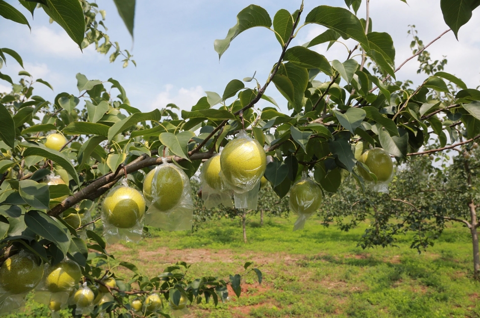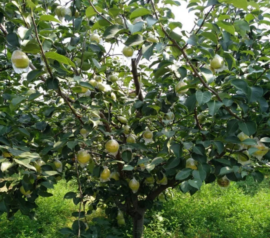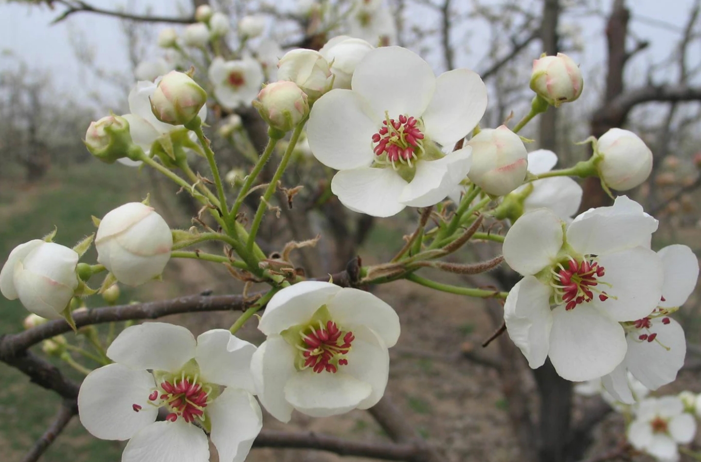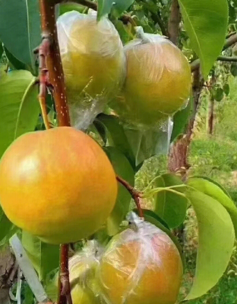 玉露香梨,蔷薇科白梨属乔木植物的果实。其树树冠大,大体呈圆锥形,纺锤形、开心形,树干直立;果实大,近球形,果面光洁细腻具蜡质,保水性强;采收时果皮黄绿色,贮后呈黄色,色泽更鲜艳;花期为4月,果期为8月底9月初。 [8]因以库尔勒香梨为母本、雪花梨为父本杂育而成,而且果肉白嫩,肉质似雪,所以取名为玉露香梨。 玉露香梨在中国北京平谷区、山西隰县、寿阳县、太谷县、汾西县均有种植,是山西省农科院果树研究所杂交育成的优质中熟梨新品种。玉露香梨喜温和、干燥气候,树体适应性及抗性强,在华北地区均可种植。玉露香梨适用于沙土、黏土、壤土等土壤,要求土层深厚、质地好、肥力高、良好的通透性、微生物活跃。玉露香梨一般采用嫁接法进行繁殖。 玉露香梨属于白梨的一种,据《新修本草》记载,梨具有润燥,生津,清热,化痰的功效;主治肺燥咳嗽,热病津伤烦渴,消渴,痰热惊狂,噎膈,目赤胬肉,烫火伤,但需注意脾虚便溏、肺寒咳嗽及产妇慎服。 玉露香梨味道香甜,口感佳,果实耐贮藏。玉露香梨在2008年北京奥运会官方指定用梨,2013年在“第十一届中华名梨·全国梨王擂台赛”中,获得了“中国梨王”称号。 植物学史 因以库尔勒香梨为母本、雪花梨为父本杂育而成,而且果肉白嫩,肉质似雪,所以取名为玉露香梨。 选育过程 玉露香梨是山西省农科院果树研究所以库尔勒香梨为母本、雪花梨为父本杂交育成的优质中熟梨品种。 2003年通过省级专家鉴定和山西省农作物品种审定委员会审定。 特征特性 【农艺形状】:该品种属白梨。鲜食。树冠中大,圆锥形,树姿较直立。果实大,卵圆形,平均单果重250克,最大果重450克。果皮黄绿色,阳面有红晕及暗红色纵向条纹,果面具蜡质。果皮薄,果心小,萼片残存或脱落。果肉白色,肉质细、松脆,汁液特多,味甜具清香。 【品质】:可溶性固形物12.5~14.0%,总糖8.70~9.80%,可滴定酸含量0.08~0.17%,糖酸比68.22~95.31:1。果肉硬度48.02牛/平方厘米,阳面着纵向条纹状红晕。 【抗性】:抗腐烂病和抗褐斑病中等,抗白粉病能力较强,较耐旱,抗寒性中等,耐瘠薄。 【物候期】:在中国宁夏银川地区,正常年份3月下旬玉露香梨花芽萌动,4月上旬初花,中旬盛花,9月下旬果实成熟,果实发育期135天左右,11月上旬落叶,营养生长期220天左右,属中晚熟品种。 产量表现 2003年,在山西参加试验,第1生长周期亩产125千克,比对照酥梨增产5.9%;第2生长周期亩产400千克,比对照酥梨增产4.7%。 适种区域 玉露香梨适宜在中国山西忻州以南酥梨适栽区春秋两季种植。 栽培技术 【植前准备】 选择定植期 玉露香梨的栽植分为春栽与秋栽两种。春栽一般在3月下旬至4月上旬,土壤解冻后、树苗发芽前,以迟为宜;秋栽一般在10月下旬至11月下旬,果树落叶后、土壤封冻前,越早越好。 挖穴施基肥 定植穴的大小应根据土质情况而定,一般沙质土壤直径80厘米、深度70厘米即可;黏质土壤直径和深度需分别达到100厘米。挖穴时,距地表25厘米以内的耕作层熟土和25厘米以下的心土要分开堆放,以便定植时将耕作层熟土和腐熟的厩肥、农家肥搅拌均匀后再回填到根群附近。定植前,将腐熟的农家肥或秸秆与心土混匀填入定植穴2/3处,踩实后将穴底做成中间高、四周稍低的馒头状小土堆,准备栽植用。 【定植方法】 把树苗放在定植穴旁,并立即用湿土埋住根部,以免风吹日晒使根部受旱而影响成活。定植时,按预定的株行距(一般为3~4米×4~6米)前后左右对齐,将苗木放在合适的位置,并把根群舒展开均匀分布在小土堆上,苗木的接口应背对着多风的一面,以免因受风寒从接口处劈裂。栽植深度以接口高于地面2~4厘米、砧木根颈部和穴面平齐为宜。树苗位置确定后将掺匀腐熟肥料的耕作层熟土拍碎,均匀填至根部,填土时应注意根系舒展并充分与土壤密接,边填土边提苗。最后把全部心土填入树穴内,并用脚踏实。 为了提高栽植成活率,并尽快取得良好的经济效益,定植应选择品种纯正、根系发达、生长健壮的苗木;一般每隔4行树要配置1行授粉树;幼苗定植后有灌溉条件的地方应立即浇水,无灌溉条件的地方应将树穴内表土锄松,再覆盖塑料薄膜,以提高新栽树的成活率。对春季栽植的苗木,注意覆膜、套防风袋,防风袋应高出树干3厘米。对秋季栽植的苗木应防止根系受冻,并及时埋土确保安全越冬,埋土时应注意先培实基部再弯倒树干,以防嫁接口裂开。 施肥管理 给梨园增施有机肥和磷、钾肥,是提高玉露香梨产量和品质的一项有效措施。有机肥一般用作基肥,在梨果采收后开沟施入。每亩用量为腐熟的农家肥或厩肥5000~6000千克,混入过磷酸钙40~50千克,拌匀后施入。钾肥可用草木灰,也可用生物钾肥,一般不宜和磷肥混施,隔年可与过磷酸钙轮流施入。追肥主要在生长期进行,以速效性肥料为主,其中以4月上中旬梨树开花前、5月中下旬花芽开始分化期和7月中旬果实膨大期3次最为关键。按每生产50千克果实追施尿素0.2千克+过磷酸钙0.6~0.8千克+硫酸钾0.5千克的量施入。7月至8月上旬在果实膨大期和花芽继续分化期进行土壤追肥,按每生产50千克果实追施过磷酸钙1千克+硫酸钾0.5~0.6千克的量施入。追肥可随灌溉或在下雨时施入,前期以氮肥为主,后期以磷、钾肥为主,也可用根外追肥的办法叶面喷施。在果实迅速生长期,每隔10天喷1次0.3%磷酸二氢钾,连喷2~3次,对提高梨果的产量和品质有重